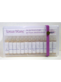 Set de testaje de 39 flores mediterráneas Lotus Blanc. Presentado en cajas de plástico duro transparentes y ligeras.